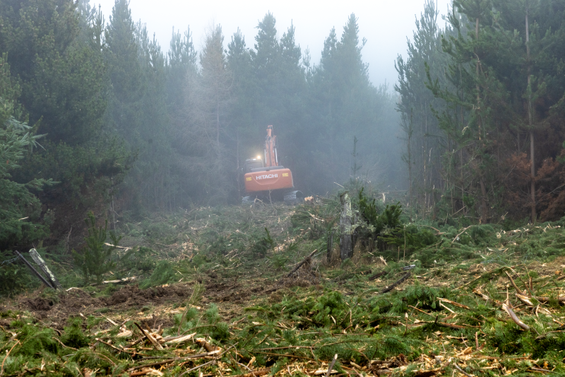 The combination of machinery, dense trees as potential fuel, and often dry conditions, meant that managing the risk of fire was a key factor early in the control. This was addressed by using the mechanical mulcher to create fire breaks through the dense infestation which are designed to slow a fire and provide safe escape routes for contractors in case a spark should catch. Thank you to Fire and Emergency New Zealand who provided advice for managing this risk at Ferintosh.