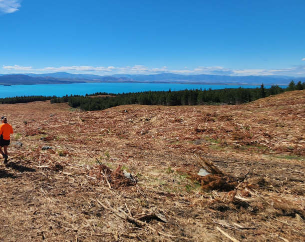 Ferintosh Station is a Crown pastoral lease managed by LINZ and has been held by the current leaseholder for around 40 years. The station adjoins conservation land and other high-country stations. This site has been rapidly invaded by wilding pines in recent years and poses a significant risk from seed spread to the surrounding areas. Due to its location, we needed to consider the potential effects on neighbouring land, safety for contractors and state highway users, and of course the lake, when undertaking control.